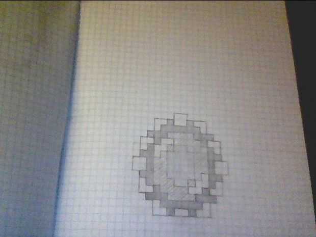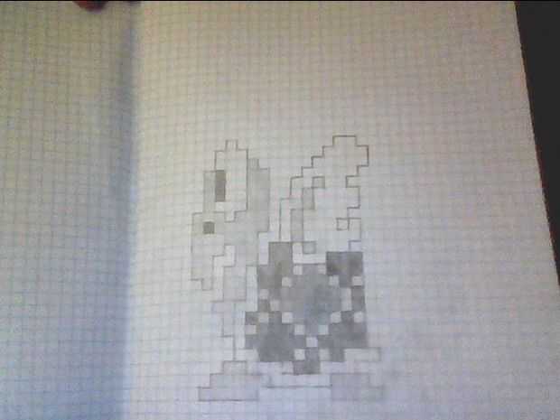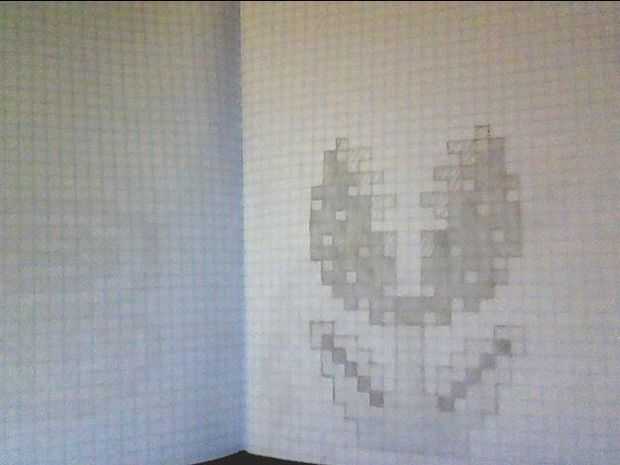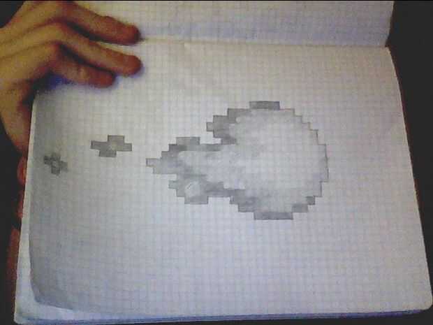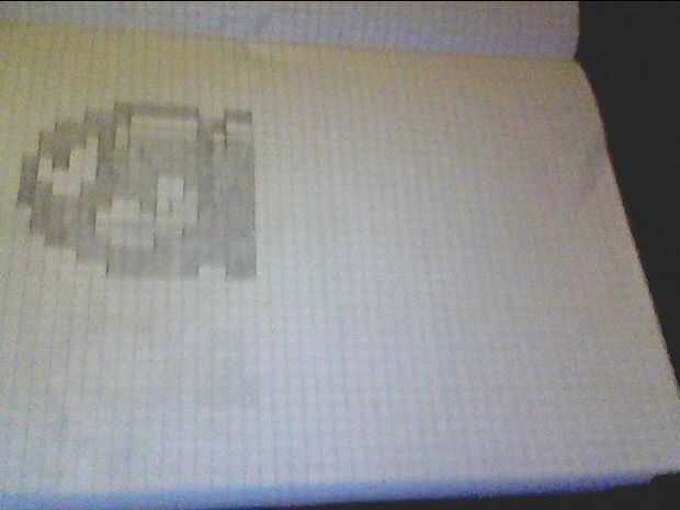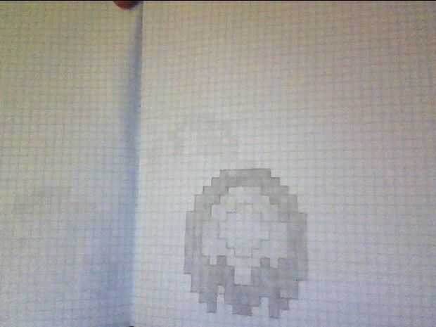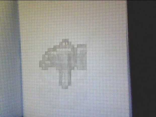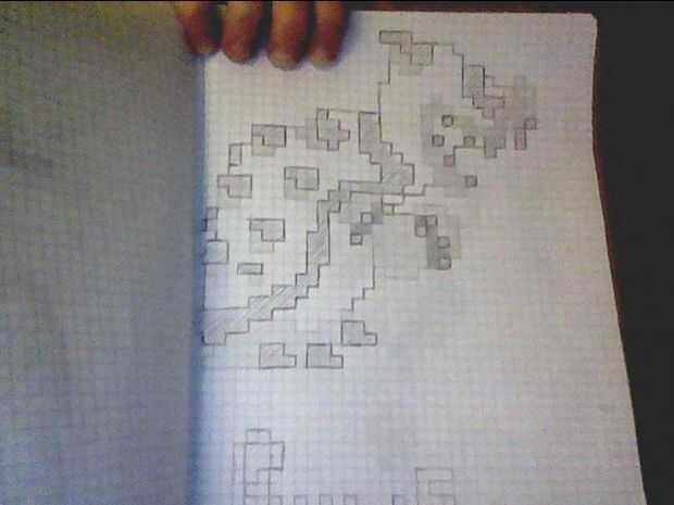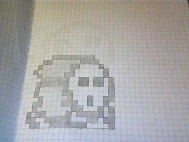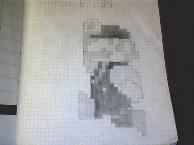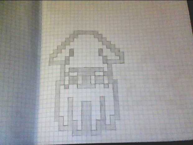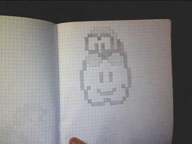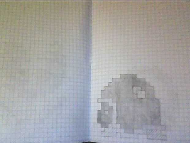 Once you find an image, draw it on graph paper. imágenes de 8 bits son extremadamente fáciles de dibujar en papel cuadriculado. Estas son las cosas que he dibujado. Hasta ahora, todo de Super Mario Bros seguro que oscurecerlo o color, por lo que se puede saber donde diferentes Notas Post-It irá.
