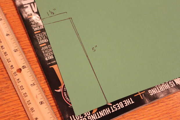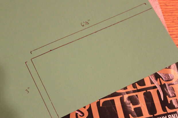 Cortar un rectángulo de papel de colores que es 6 1/2" por 3". A continuación cortar una 1 1/2" por 5"