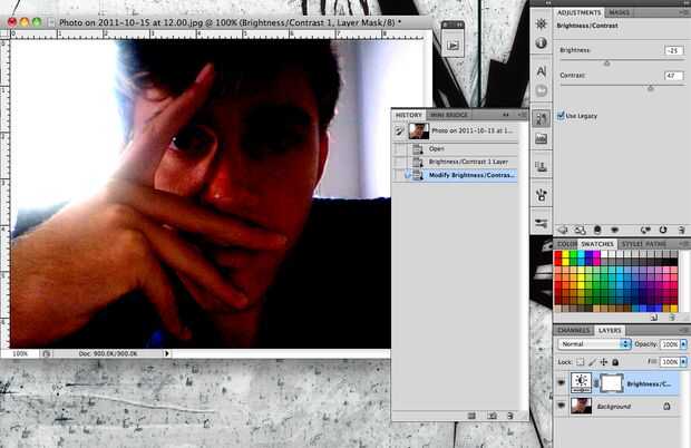 En primer lugar, crear una nueva capa de ajuste Brillo/contraste a través de la plataforma en la esquina superior derecha. Rondando sobre los distintos botones le dirá que uno es. Quería crear algunos oscuridad y contraste de color claro para que el siguiente paso no quitar todos del color de la imagen.