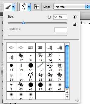 Seleccione el pincel en el cuadro etiquetado 54, que se ve como un puñado escaso de puntos. Cambiar el color a un rojo profundo, oscuro. Si le sucede que tiene una tableta de dibuja, activar la sensibilidad a la presión para la opacidad y el tamaño de la barra de opciones.