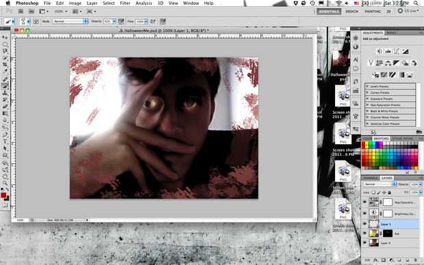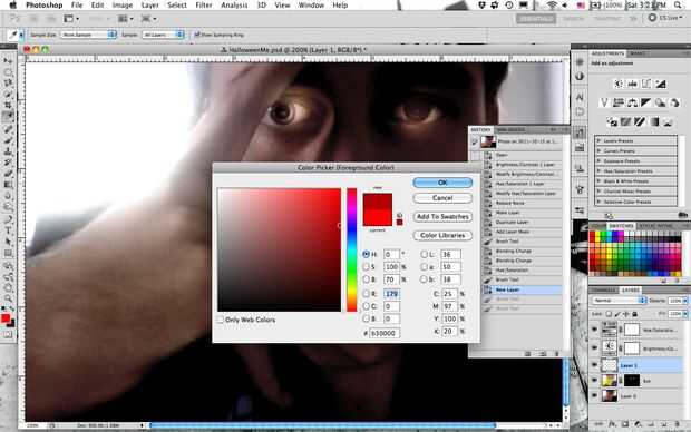 Crear una nueva capa por encima de las capas de imagen, pero por debajo de las capas de ajuste. Se trata de la capa de sangre. :)