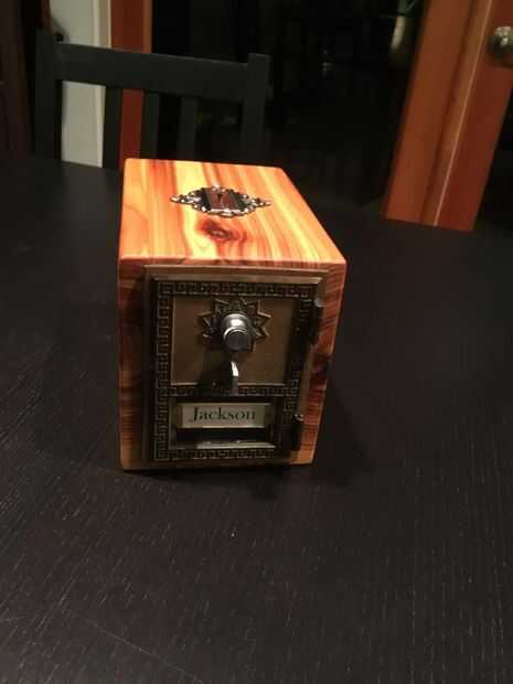 Para hacer su único, utilicé algo más de lo"fancy" y había fabricado una ranura de moneda. Usado las placas de metal etiqueta compré y había pegado un trozo muy fino de corazón marrón. Una vez seco, lija al ras. Perforé una ranura recta en la parte superior. Una vez que el tamaño que necesitaba, me perforó un agujero a través de la madera encolada y los alineados. Una vez alineados, aseguró la placa hacia abajo y utiliza un archivo de micro para hacer la ranura. Esto ocurrió en algún momento. Necesito volver a limpiarlo. Corrí fuera del tiempo sin embargo. Como dije, estos terminé la noche anterior.