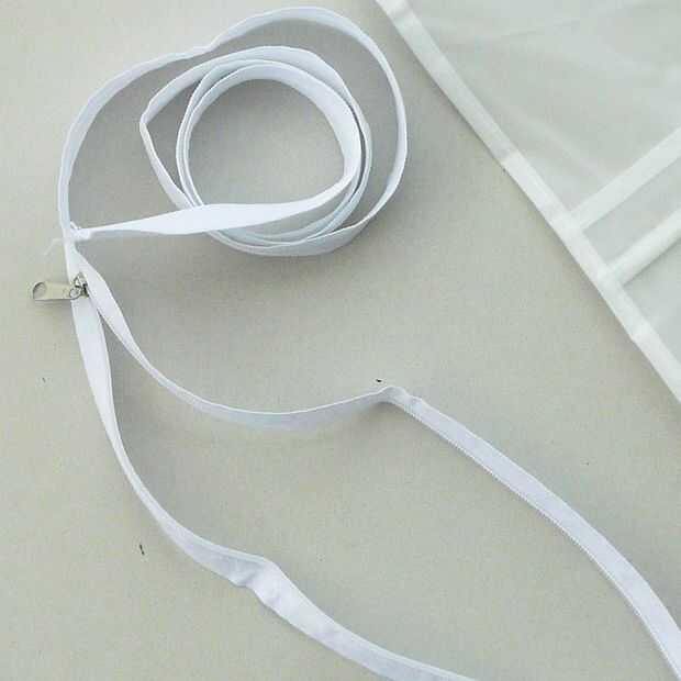 Comprar una cremallera larga puede ser bastante caro. O usted puede ser ingenioso: yo tengo la mía por descosiendo de una cubierta de plástico ropa compré por 3$.