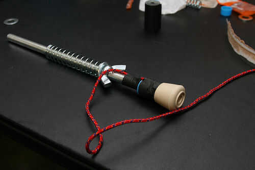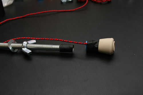 Añadir una tira de 1" de la cinta hasta el final de la varilla de resorte en el extremo de la tuerca de mariposa. Esto es sólo a unas cuantas vueltas que sirven para tomar algo de la ondulación del sistema entre la barra roscada y el interior del conducto. También conserva los pies.