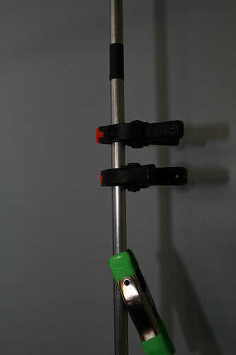 Pueden afianzar con abrazadera, cinta y alambre de atan al poste o puede capturar un telón de fondo entre la extremidad superior y el techo. Dos postes de compresión y tiene un soporte para telón de fondo.