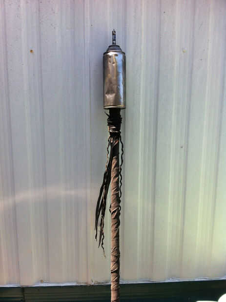 solo un apoyo de Granada de palillo básico, muy fácil de construir. La mata negra fue la única pintura que tenía, así que tuve que hacer. Es la lista de piezas: algunas tuberías de pvc, lata, tubo de protector labial, cadena y grano de madera. Derrit