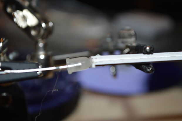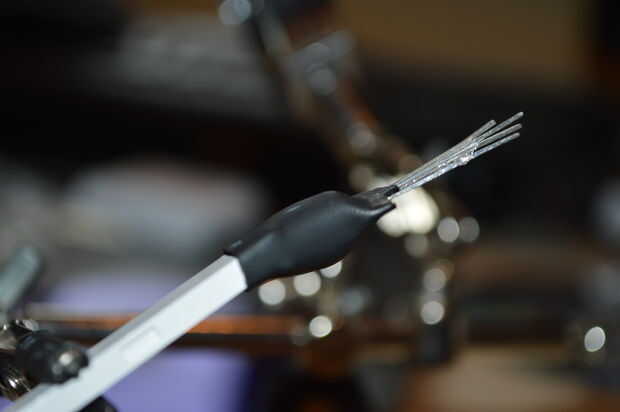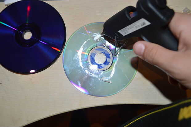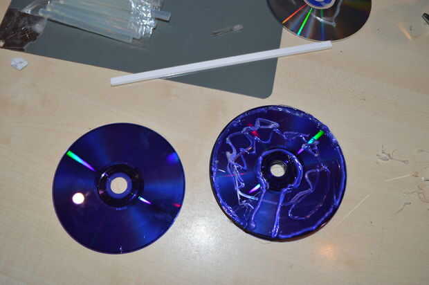 Unir todos los CD excepto uno (el abajo). También ceder un poco para los cables como en la imagen. Y también poste y fije con el tubo del encogimiento del calor del LED.