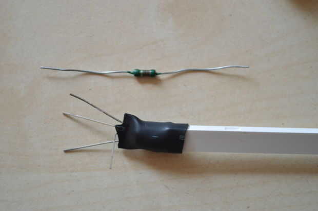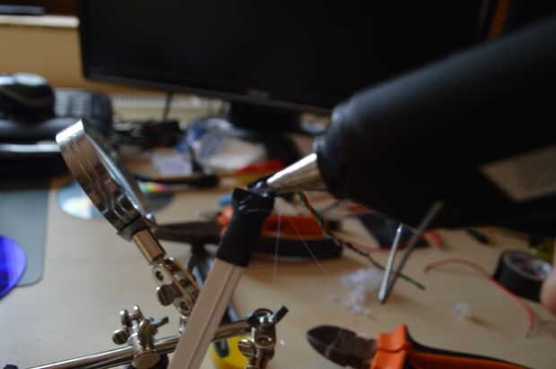 También no se olvide de aislar las conexiones. Así el tubo del encogimiento del calor a las piernas y añadir pegamento caliente.