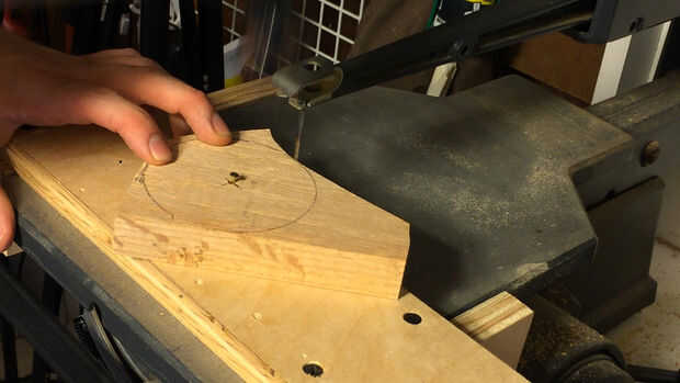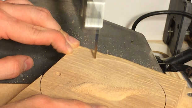Esto se puede hacer mano si es necesario. Construí una plantilla sencilla que es simplemente un pedazo de madera con un clavo donde debe ser el centro del círculo. Simplemente girar la madera y deje que la Sierra de caladora cortar un círculo casi perfecto