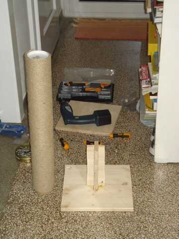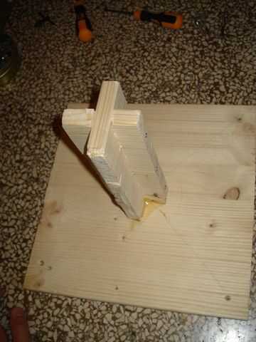Entonces tuve que hacer una especie de "torre" que firmemente conectado con la base y que irá dentro del tubo para hacerlo permanente vertical. He hecho haciendo una cruz con piezas de madera de 20 cm de largo. Idealmente debería ser largo como el tubo sí mismo pero sólo tenía mucho de una madera tan... Realmente no puso mucho esfuerzo en esta parte (lijar, no entablillar madera...) Esta parte debe ser tan ancha como el diámetro del tubo (en mi caso 8 cm). Puse pegamento en la conexión de las partes por si acaso.