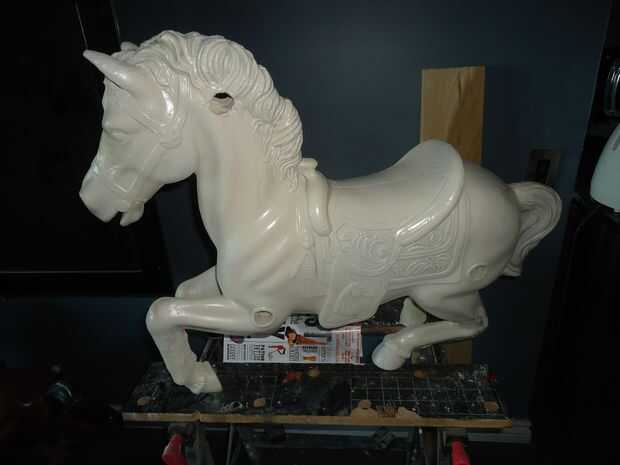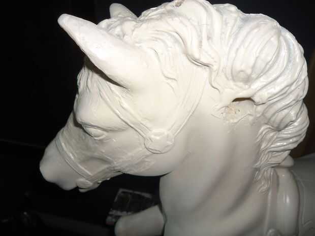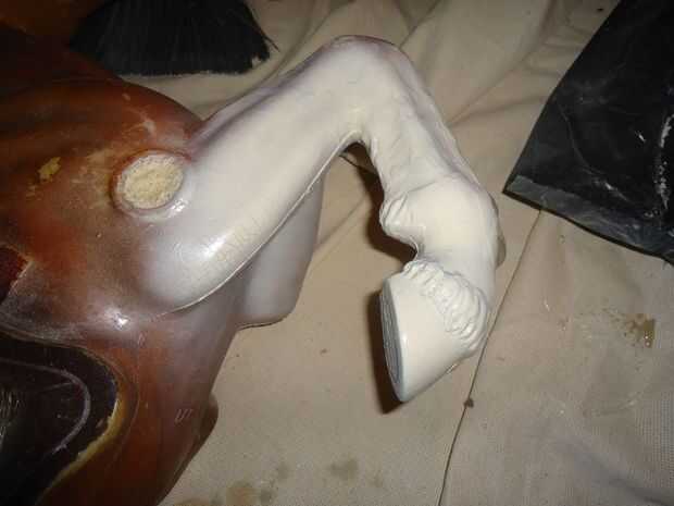 Usando una Dremel alisa lo más posible pero ya el epoxi está claro era difícil ver los puntos que necesita para estar en forma. Acabé de rociar las piernas y reparar zonas con la pintura de imprimación que destacó las incoherencias. Yo entonces lijar esas áreas hasta que suave y en forma. La cartilla también completó algunos pequeños rasguños en el plástico original. Una vez que estaba contento con la forma puse dos capas de imprimación sobre el caballo.