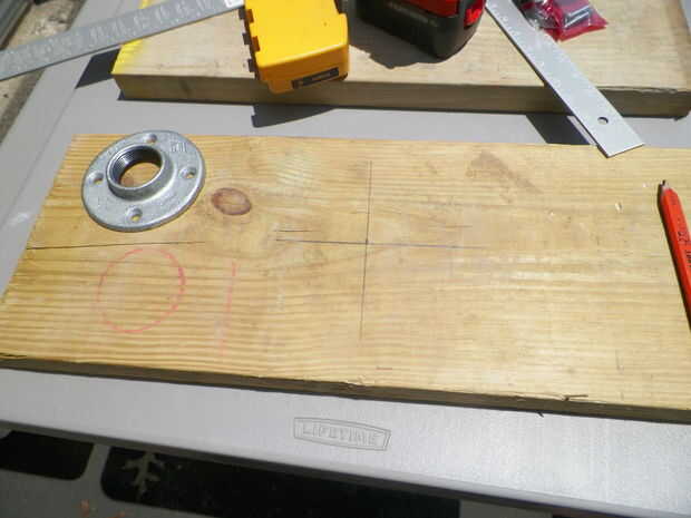 Fui un poco por la borda (tengo enfermedad de ingeniero) y utiliza una plaza de estructura bastante cerca del centro del tablero y darme líneas de alineación para la fijación de la brida. Usted podría apenas como fácilmente globo ocular la brida en el centro y marcar los agujeros de montaje con un lápiz.