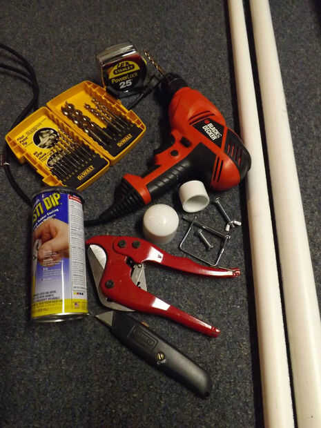 Lo que usted necesita se variará ligeramente dependiendo de cómo desea que sus polos para buscar. Utilizado plasti dip para dar las copas de un agradable suave acabado y terminó usando pernos en vez de pernos y tuercas de mariposa para asegurar los postes para no tener que preocuparse por perder la tuerca de mariposa. Lo que usted elija depende de usted!
