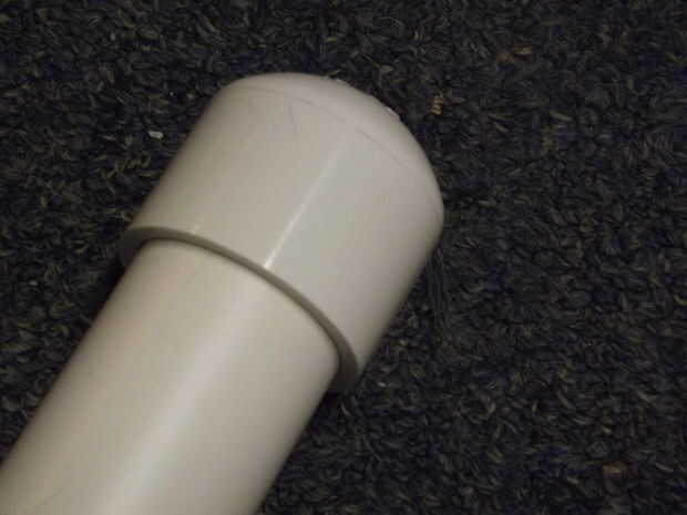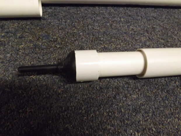 Añadir la tapa 1 1/4 a un extremo de la tubería de pvc de 1 1/4. Deslice el tubo de pvc de 1 pulgada en el otro extremo. Agregar la tapa de 1 pulgada (con el perno que se pega hacia fuera) en el extremo expuesto de la tubería de 1 pulgada.