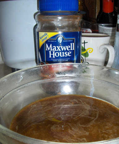 Disolver el café en agua caliente y añadir el extracto de ron y crema. Mezcle bien.