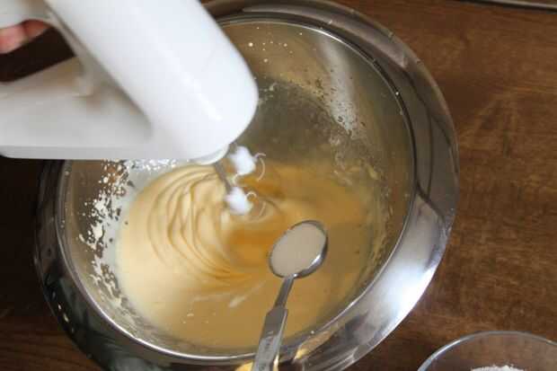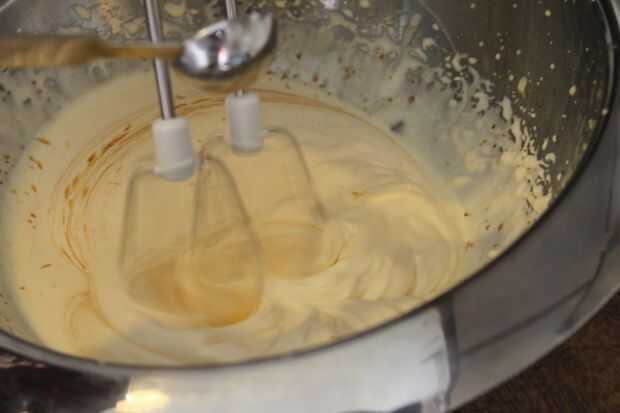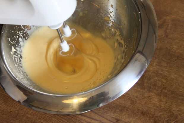 2. mezclar las yemas de huevo a velocidad alta hasta que esté cremosa.