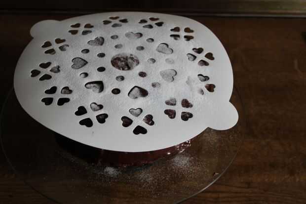 3 ponen la torta decoración plantillas sobre la torta y el polvo algunos glaseado azúcar - esto es solo para decoración.