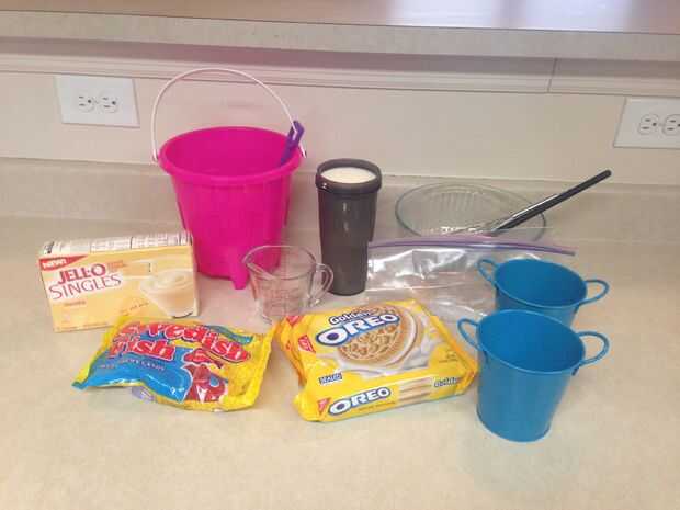 este es un postre inspirado en algo que vi en línea! Broma a tus amigos comiendo "Arena".Se necesita:1/2 paquete de obleas de vainilla2-3 galletas Oreo4 oz de queso crema1/8 de taza de mantequillaazúcar 1/3 de taza en polvo1 Pudin de vainilla de