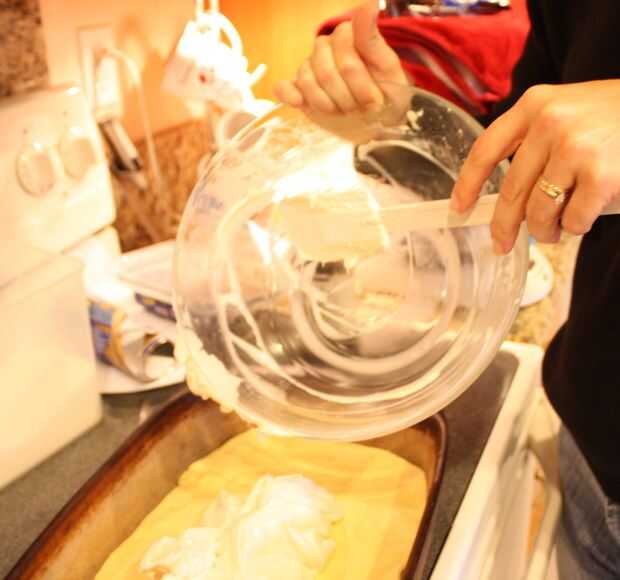 en tiempo de vacaciones de la hornada, probar este pastel de pan de jengibre con crema de queso crema. La torta de pan de jengibre es fácil de hacer, y la crema de queso crema látigos para arriba rápidamente. La torta es ligera y rica en especias y l