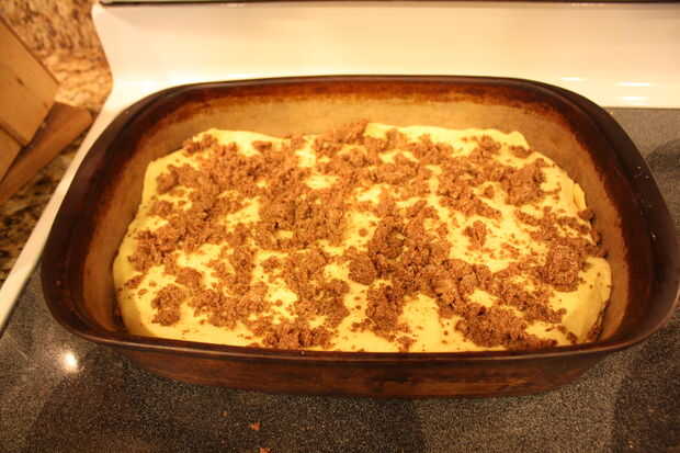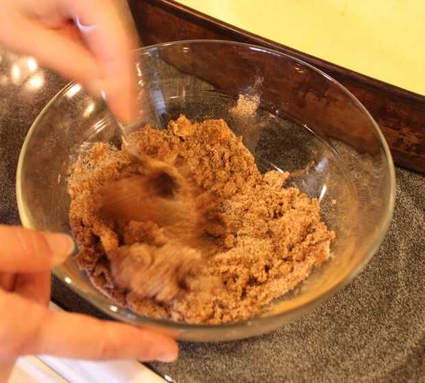 Relleno de mezcla: canela, el azúcar, la mantequilla en un bol pequeño y espolvorear encima del relleno.