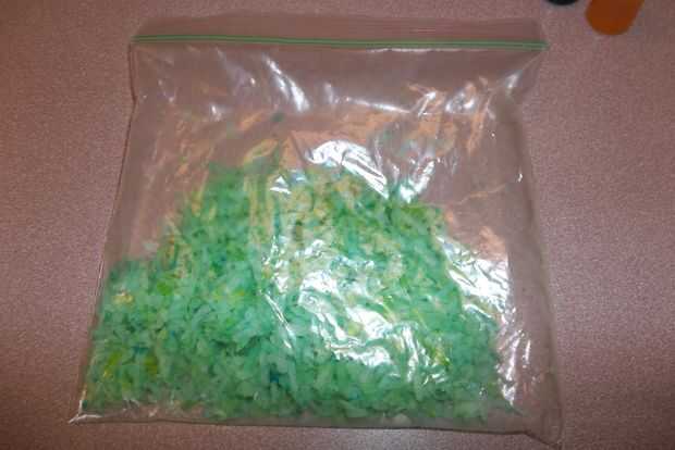 Coloque la mitad del coco en una bolsa con un colorante verde. Agite la bolsa hasta verde. Poner cada coco blanco y verde en un tazón. Poner en nevera.