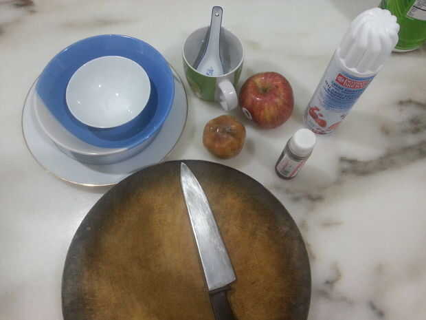 Otoño está aquí y Halloween está ya a la vista, así que hice un postre de manzana de temporada! : o).Esta receta es para 4 porciones. Cuando hay niños alrededor utilizan jugo de manzana en lugar de Ron!Paso 1: Esto es lo que necesita:Para 4 porciones