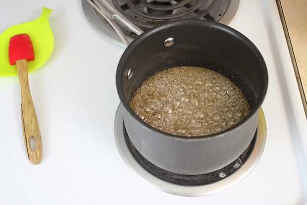 Retirar del fuego y dunk inmediatamente la cacerola en un baño de hielo para evitar que sigan cocinándose el azúcar. Retire del agua y ponerlo al lado de una hoja de papel sulfurizado untado con mantequilla.