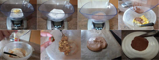 3. una vez en una consistencia espesa, mezclar el cacao en polvo y esencia de vainilla.