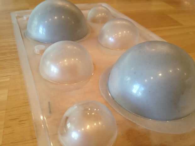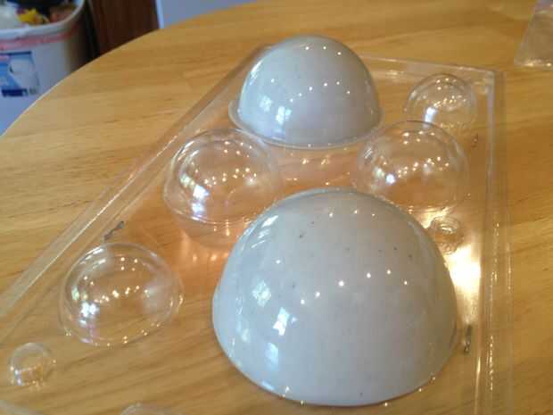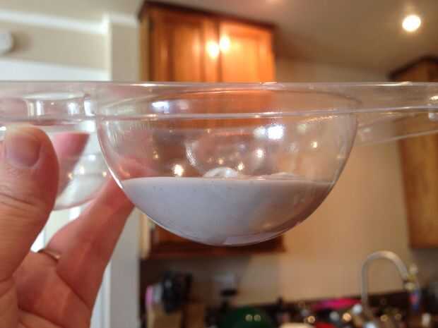 Mezclar lo suficiente para hacer ambas mitades de la estrella de la muerte y seguir las indicaciones en el molde de caramelo para prepararse sus cúpulas. Punta - haría cúpulas extras porque estas cosas pueden ser un b * tch para salir del molde. Tuve que hacer reparaciones de chocolate en la mía.