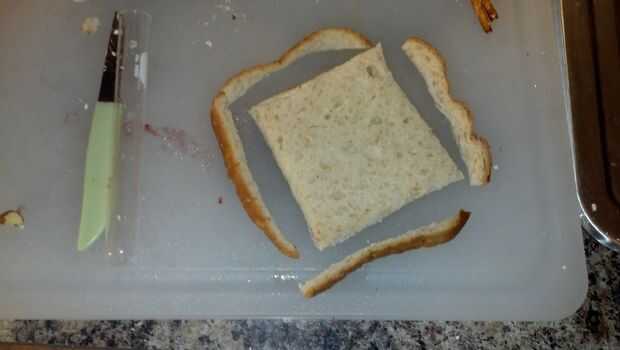 Simple. Cortar las cortezas de pan, intenta no perder más de lo que a.