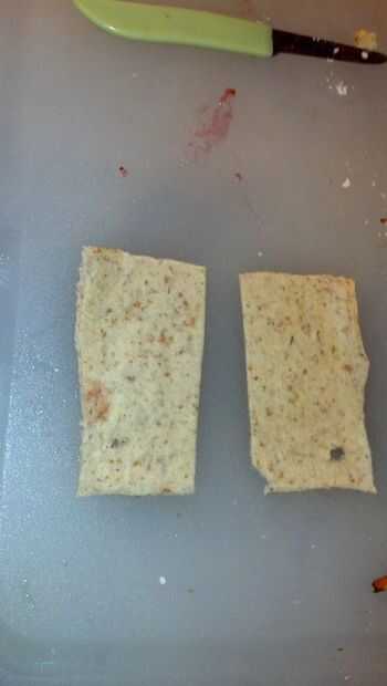 Corte el pan por la mitad, cada uno se convertirá en un dedo. Poner una a un lado por ahora.
