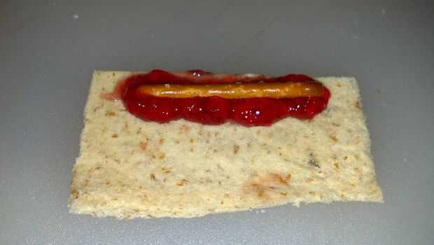 Usar el pretzel a extienda la mermelada tal como se muestra, luego poner el pretzel en lugar.