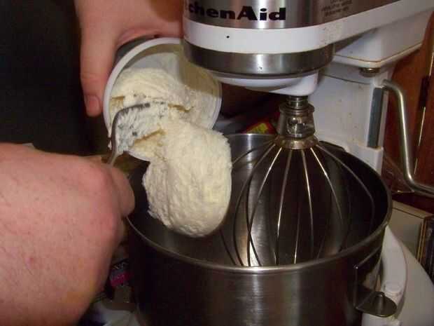 Vaciar el queso crema en el Bol... Utilicé queso crema batida - usted no tiene, puede utilizar la clase regular y a dar latigazos en escenario 3...