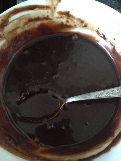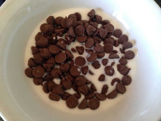 chips de chocolate con leche de 1/3 c derriten junto con 2 cucharadas de leche, en microondas. Deja enfriar a temperatura ambiente