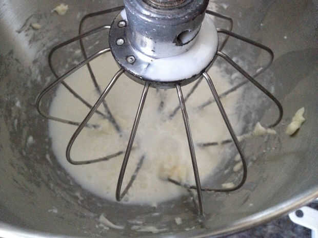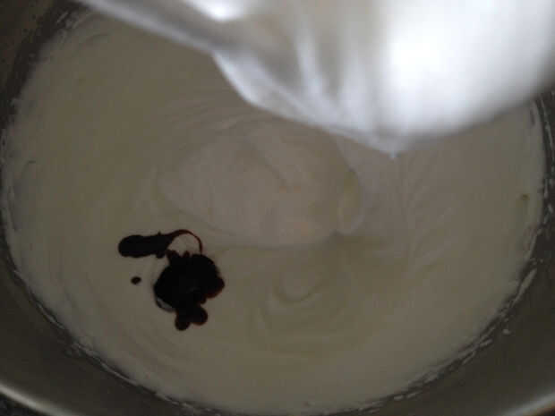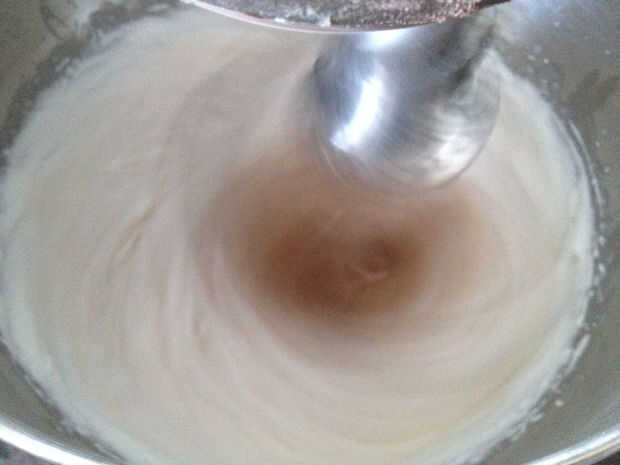 Batir el queso crema con azúcar glas y batir en látigo de sueño más seguido con chocolate derretido, hasta que cremoso y esponjoso de leche