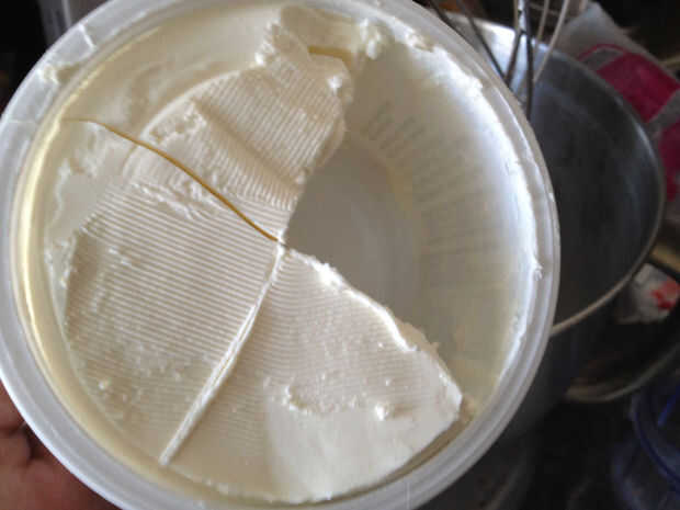 1 Tarrina de queso crema extendido (250 g), se dividen en cuatro parte como se muestra en la imagen y usar sólo 1 porción