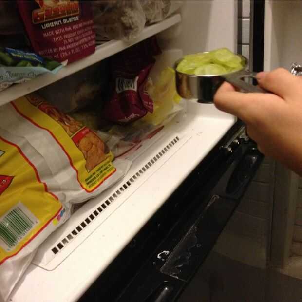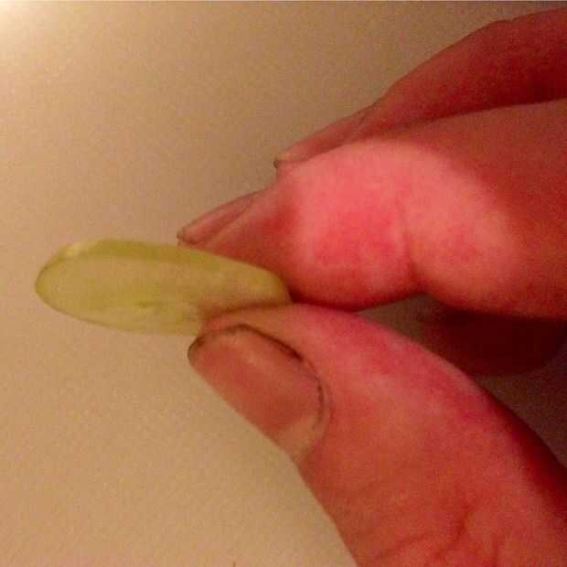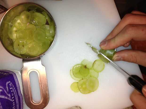 Corte suficientes uvas longitudinalmente para llenar una taza de 1/2 taza de medir, asegúrese de cortarlas fina (espesor óptimo se muestra en la figura #2).