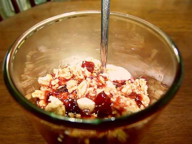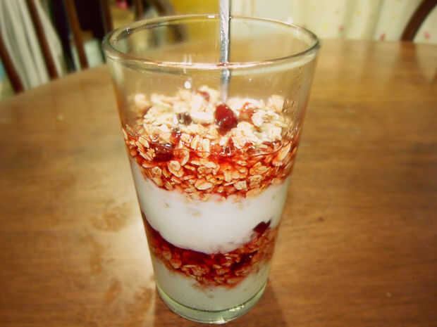 Disfrutar de su simple granola, yogur y parfait de fresa jarabe!!! : D