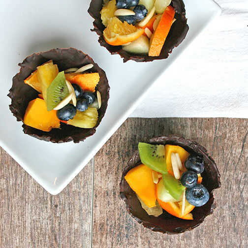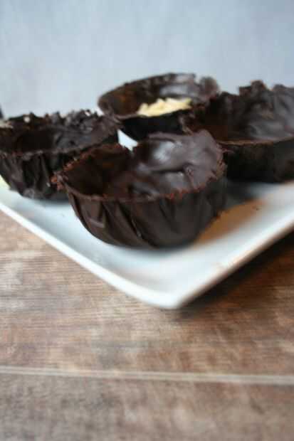 Después de 10 minutos, retire cada unidad de tazón de fuente del refrigerador. La primera capa de chocolate debe ser firme y mirada ligeramente mate. Cepille el interior de cada contenedor con otra capa de chocolate, una vez más prestando especial atención a los lados de cada plato. Volver los tazones de fuente del moldeado para el refrigerador y dejarlas durante 10-15 minutos. Sacar de la nevera y utilizar la envoltura plástica sobresaliendo de los lados para sacar la taza del chocolate desde el recipiente de moldeo. Como suavemente como sea posible, retire el envoltorio plástico. Debe salir muy fácilmente, y usted quedará con tazones de fuente de chocolate. Mantenga los tazones de fuente en el refrigerador, cubierto de plástico, hasta que esté listo para rellenar. Cuando esté listo, suavemente sin vender el plástico y el relleno.