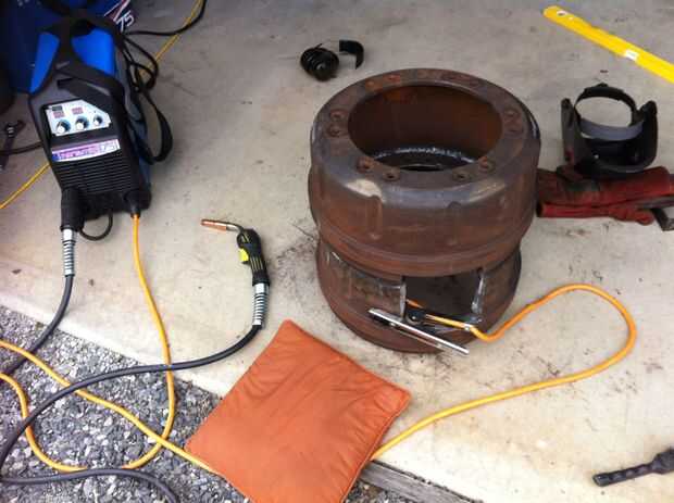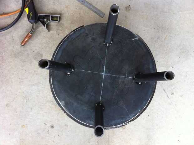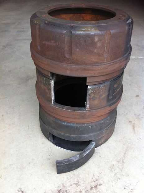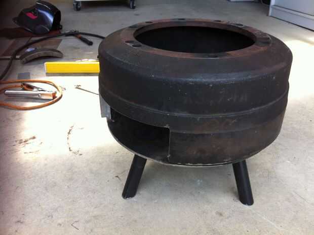 Mi build hace uso de 3 tambores de freno de camión viejo, chatarra de recortes de acero y tubería de agua para la piernas de bandeja de cenizas y humos / chimenea.