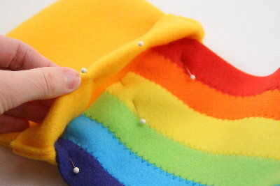 Coser una costura alrededor del borde de la maceta, asegurar el arco iris a un lado. La parte superior de la maceta debe estar abierta a un lado.