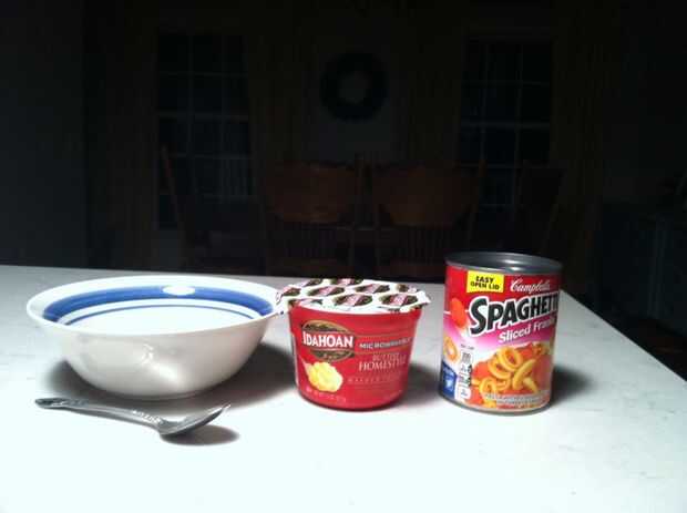 - Tazón microondas lo suficientemente grande para el SpaghettiOs y las patatas