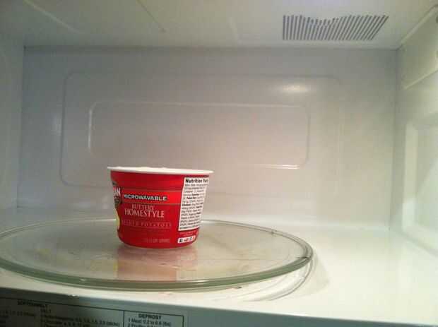 4. Retire el recipiente del microondas.
