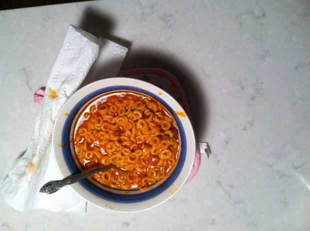 2. Transferir el SpaghettiOs de la lata a un recipiente de microondas seguro.