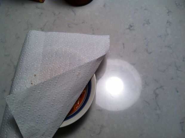 3. Cubrir el tazón antes de cocinar con microondas. Puede utilizar un plato de microondas y tapa de la Cuba, una servilleta o una toalla bounty; Usé una toalla bounty.
