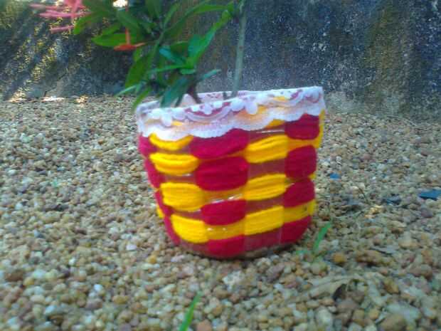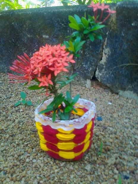 Después de hacer tus flores de Pascua o flores, decorar el bote es esencial para hacer terminar.Paso 1: Cómo envolver un pote con papel de embalaje decorativo Lo que usted necesita:Una olla (usted puede decidir si es un vaso de plástico o porcelana q