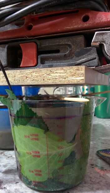 Comenzar a agregar un poco de agua en un tiempo y continuar mezclando hasta obtener la viscosidad de la harina de avena. No debería ser líquida pero no estancia o puesto. Recuerde que debe fluir en todas las grietas de las hojas, así que necesita fluir un poco.