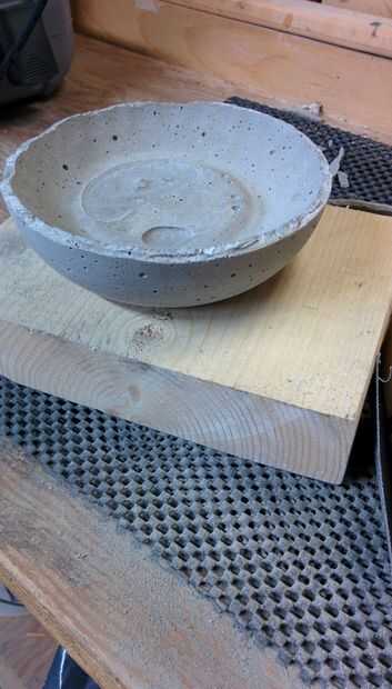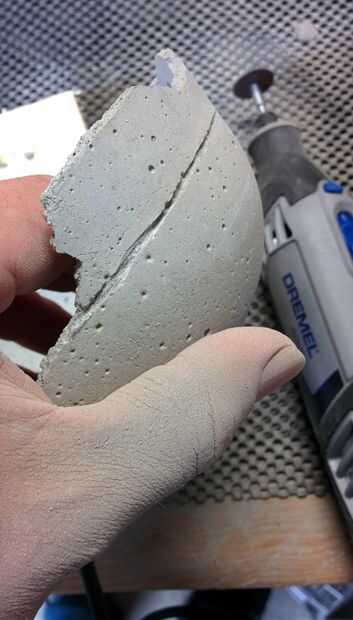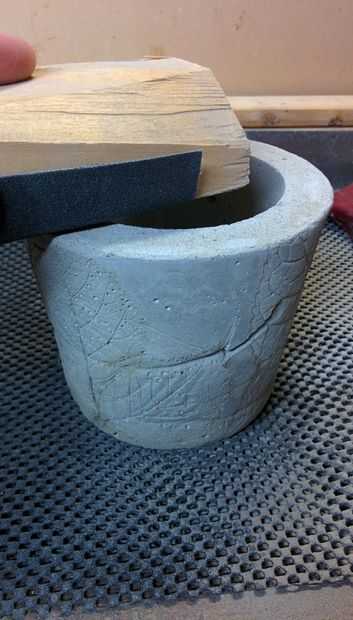Cuando todo ha sido demolded, puede tomar un papel de lija (yo usé un 80grit) y un bloque de madera a arena y a nivel del borde superior de la taza y platillo. En mi caso hice la forma del platillo demasiado profunda, así que tuvo que cortar las paredes con una Dremel y un disco de corte y luego de arena que el borde superior hacia abajo así.