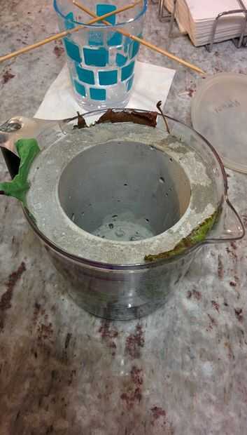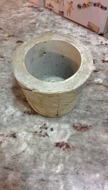 Es en este punto que también desea perforar unos agujeros en la parte inferior de la maceta para el drenaje. Asegúrese de utilizar una broca para mampostería y van muy lentamente. Perforados desde el interior del vaso hacia fuera y tenía un poco de reventón en el fondo de la olla, pero esto está bien ya que esa parte siempre estará sentado en el platillo y por lo tanto fuera de la vista.