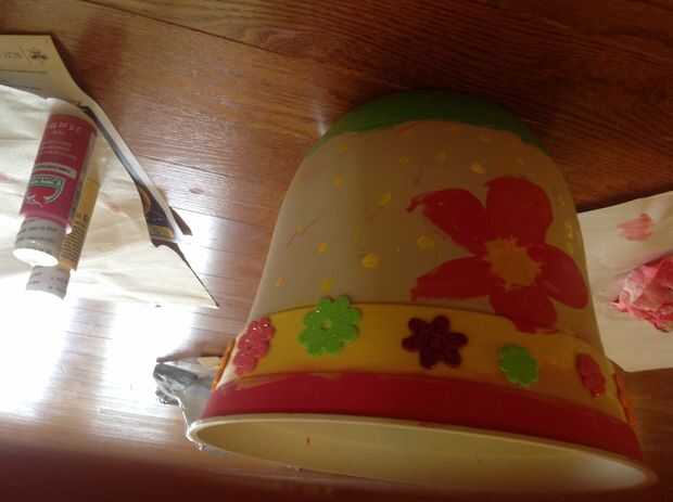 Hice algunos lunares algunas pulgadas lejos y sí pega flores de espuma en el área pintada y pintado de verde en la parte inferior